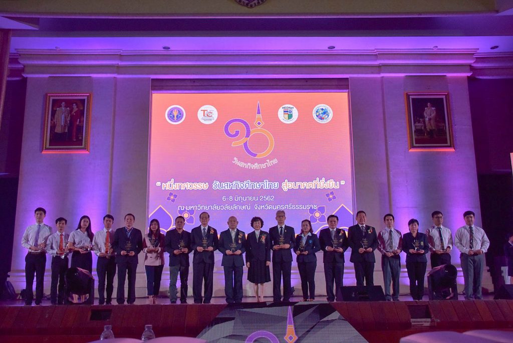 เมื่อวันที่ 6 มิถุนายน 2562 ที่ผ่านมา มหาวิทยาลัยวลัยลักษณ์ ร่วมกับสำนักงานปลัดกระทรวงการอุดมศึกษา วิทยาศาสตร์ วิจัยและนวัตกรรม (อว.) สมาคมสหกิจศึกษาไทยและเครือข่ายพัฒนาสหกิจศึกษาภาคใต้ตอนบน และเครือข่ายพัฒนาสหกิจศึกษาภาคใต้ตอนล่าง จัดงานวันสหกิจศึกษาไทย ครั้งที่ 10 พ.ศ.2562 ภายใต้คำขวัญ “หนึ่งทศวรรษ วันสหกิจศึกษาไทย สู่อนาคตที่ยั่งยืน” เพื่อเป็นสื่อกลางในการเผยแพร่ความรู้ ความเข้าใจ และแลกเปลี่ยนประสบการณ์การดำเนินงานด้านสหกิจศึกษาในสถาบันอุดมศึกษาทั่วประเทศ ณ หอประชุมใหญ่ อาคารไทยบุรี โดยในพิธีเปิดได้รับเกียรติ ดร.อรสา ภาววิมล รองเลขาธิการคณะกรรมการการอุดมศึกษา กระทรวง อว. เป็นประธานในพิธี และ ศาสตราจารย์ ดร.วิจิตร ศรีสอ้าน นายกสมาคมสหกิจศึกษาไทย ศาสตราจารย์ ดร.สมบัติ ธำรงธัญวงศ์ อธิการบดีม.วลัยลักษณ์ และรองผู้ว่าราชการจังหวัดนครศรีธรรมราช (นายวิรัตน์ รักษ์พันธ์) ร่วมต้อนรับผู้บริหารสำนักงานคณะกรรมการการอุดมศึกษา (สกอ.), ผู้บริหารสถาบันอุดมศึกษา, คณาจารย์, สถานประกอบการ, เครือข่ายวิชาชีพ และนิสิตนักศึกษา เข้าร่วมงานกว่า 1000 คน รองเลขาธิการคณะกรรมการการอุดมศึกษา กล่าวว่า สำนักงานปลัดกระทรวงการอุดมศึกษา วิทยาศาสตร์ วิจัยและนวัตกรรม (สำนักงานคณะกรรมการการอุดมศึกษาเดิม) เป็นหน่วยงานหลักที่ทำหน้าที่ผลักดันและดำเนินการจัดการศึกษาในรูปแบบสหกิจศึกษา (Cooperative Education) ซึ่งสหกิจศึกษาถือเป็นการเตรียมบัณฑิตให้พร้อมสู่โลกแห่งการทำงานจริง ทำให้บัณฑิตมีศักยภาพพร้อมทั้งทางวิชาการ วิชาชีพและวิชาชีวิต ซึ่งสอดคล้องกับเป้าหมายและทิศทางการพัฒนาประเทศตามยุทธศาสตร์ชาติ 20 ปี และเป้าหมายการพัฒนาอย่างยั่งยืนของสหประชาชาติ ตลอดระยะเวลากว่า 10 ปี ที่ทบวงมหาวิทยาลัยและสำนักงานคณะกรรมการการอุดมศึกษาเดิม ได้กำหนดนโยบายส่งเสริมสหกิจศึกษาในสถาบันอุดมศึกษาและใช้เครือข่ายพัฒนาสหกิจศึกษา 9 เครือข่ายทั่วทุกภูมิภาคของประเทศเป็นกลไกขับเคลื่อนมาอย่างต่อเนื่อง ได้เห็นพัฒนาการและความก้าวหน้าของการยกระดับคุณภาพบัณฑิตไทย ทั้งในเชิงปริมาณและเชิงคุณภาพ ปัจจุบันมีสถาบันอุดมศึกษาจัดสหกิจศึกษาเพิ่มขึ้นมากกว่า 50% มีสถานประกอบการเข้าร่วมกว่า 19,000 แห่ง ในเชิงของคุณภาพจะเห็นได้ว่าการจัดสหกิจศึกษาไม่เพียงตอบสนองความต้องการของผู้เรียน และผู้ใช้บัณฑิตภายในประเทศเท่านั้น แต่ยังก้าวหน้าไปสู่มาตรฐานสากลผ่านสหกิจศึกษานานาชาติ นอกจากนี้ความรู้และประสบการณ์จากสหกิจศึกษายังเป็นรากฐานสำคัญที่จะส่งเสริมให้บัณฑิตก้าวสู่กา